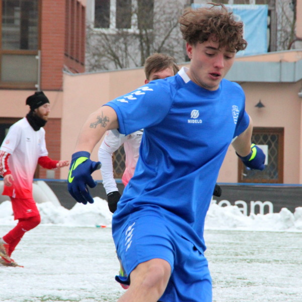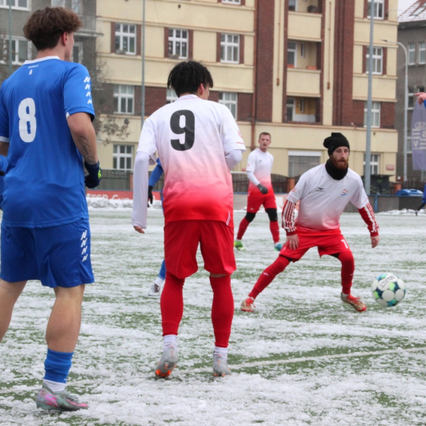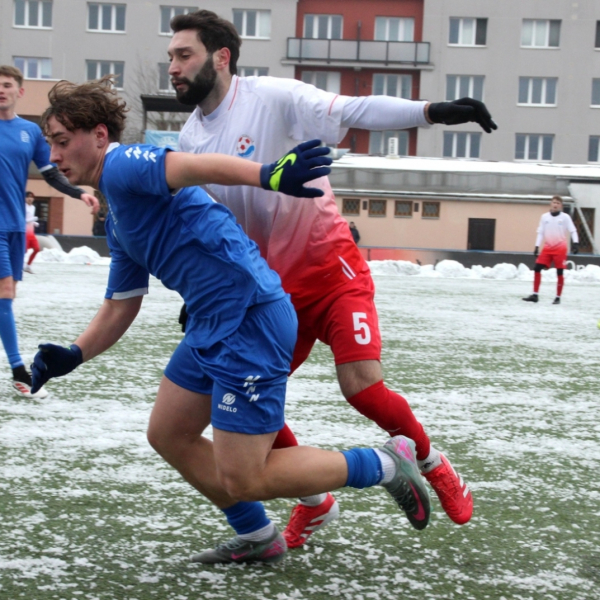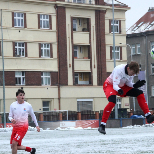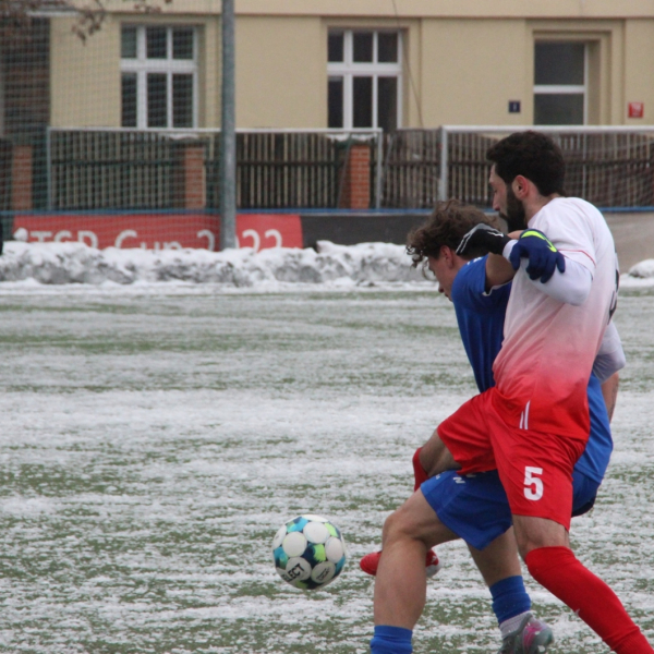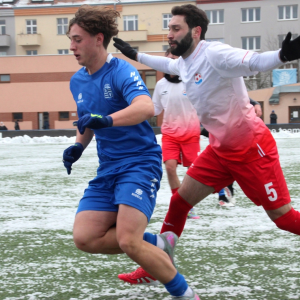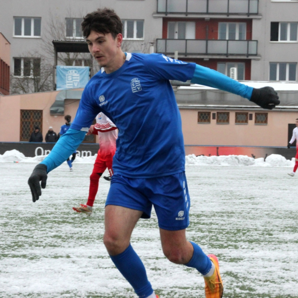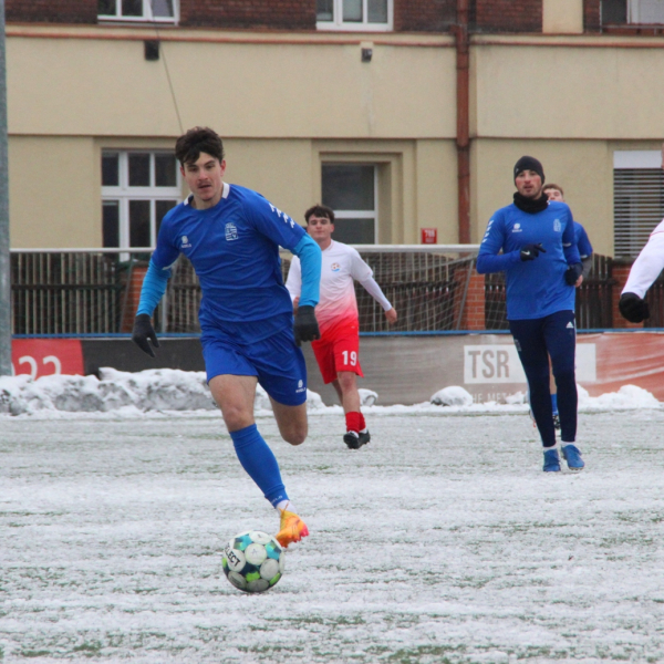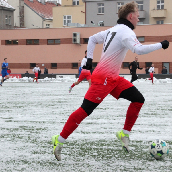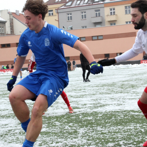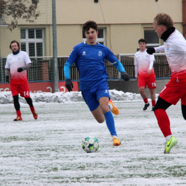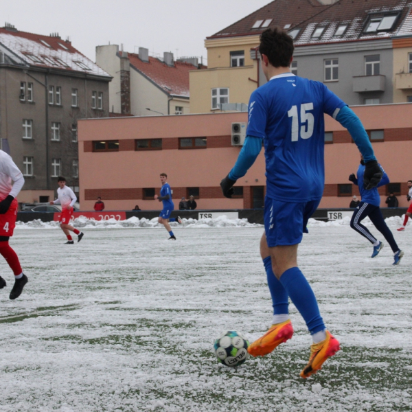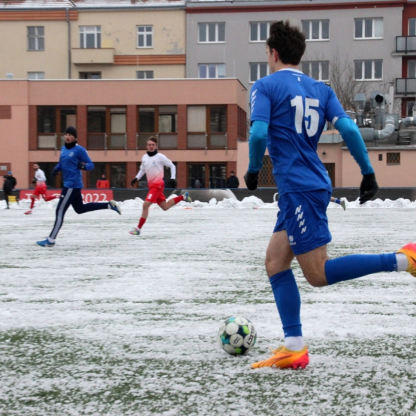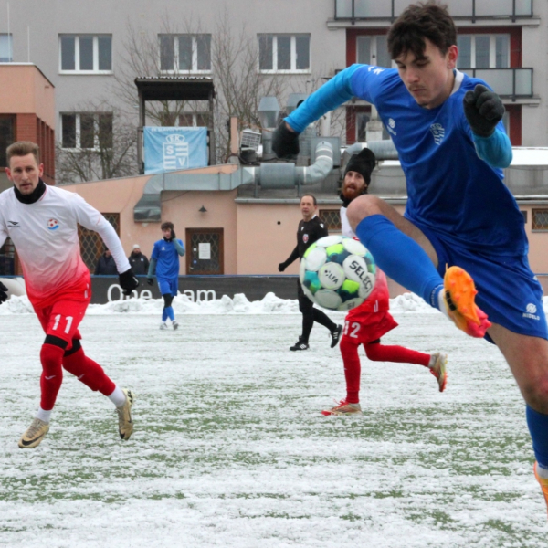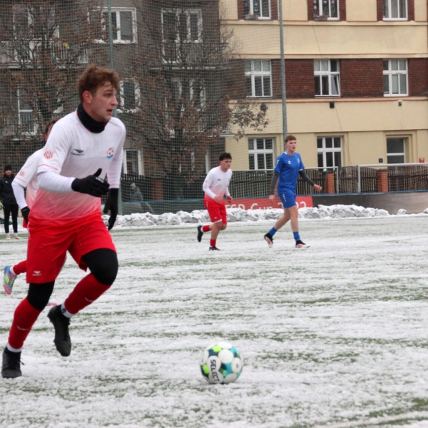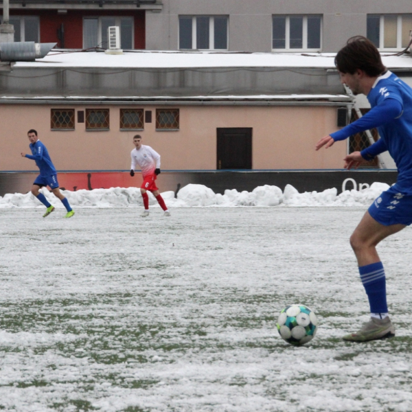 „A“-muži – Už v polovině prvního poločasu bylo hodně zřetelné, že třetí přípravné utkání v rámci zimní pauzy dovedou fotbalisté Slavoje Vyšehrad k vítěznému konci. Po 22 minutách hry totiž vedli nad Povltavskou 3:0, přičemž u všech tří branek, jež padly v rozmezí jedenácti minut, byl krajní záložník Matěj Prýmas (na snímku): první dvě dal sám a vzápětí, po faulu na něj v šestnáctce, proměnil penaltu Jiří Heřman. Až za tohoto stavu druhý tým podzimní tabulky divize A zvedl hlavu, vypracoval si šance, ale zmohl se jen na čestný úspěch po změně stran. Zápas na zmrzlém terénu tak skončil 3:1.