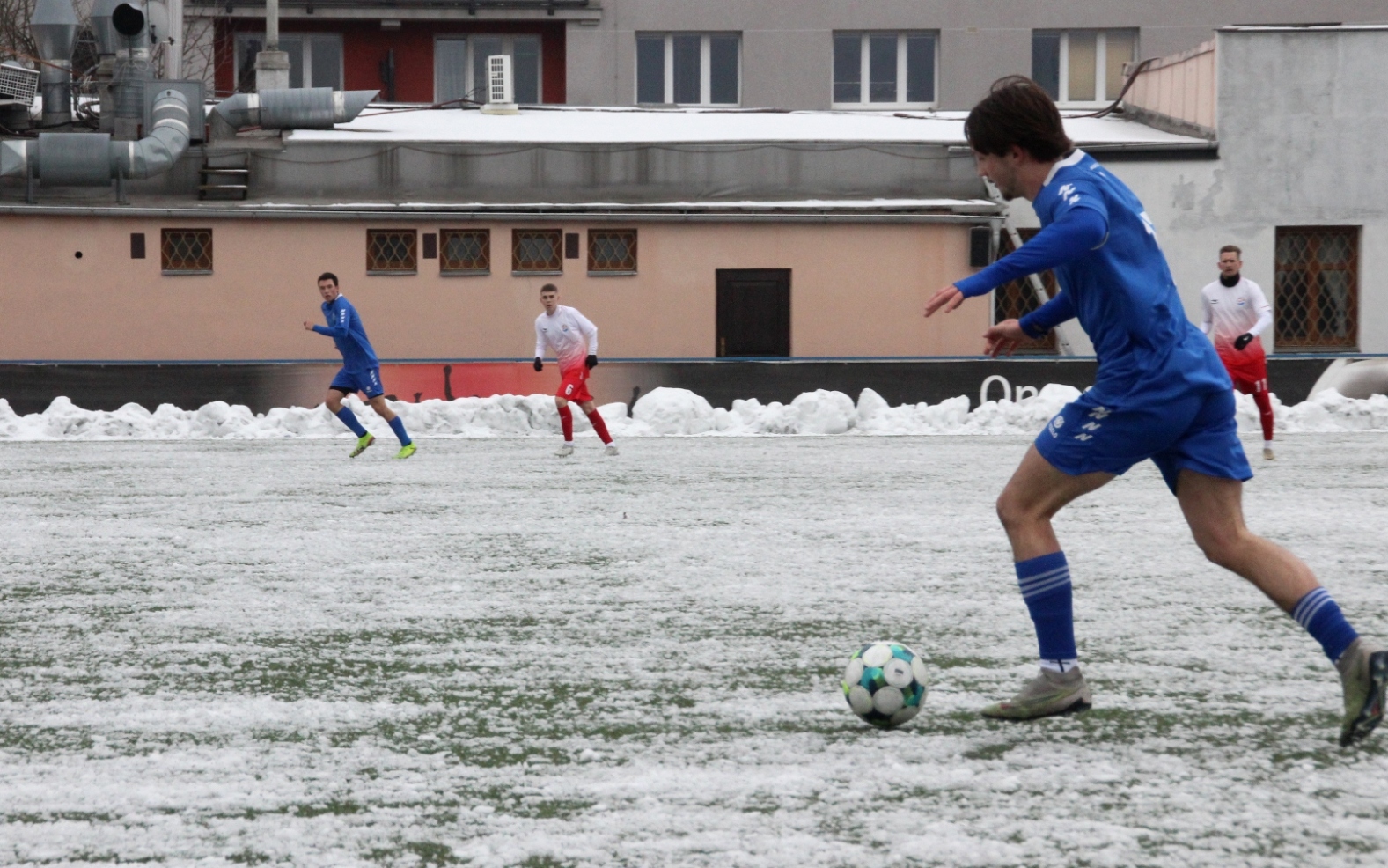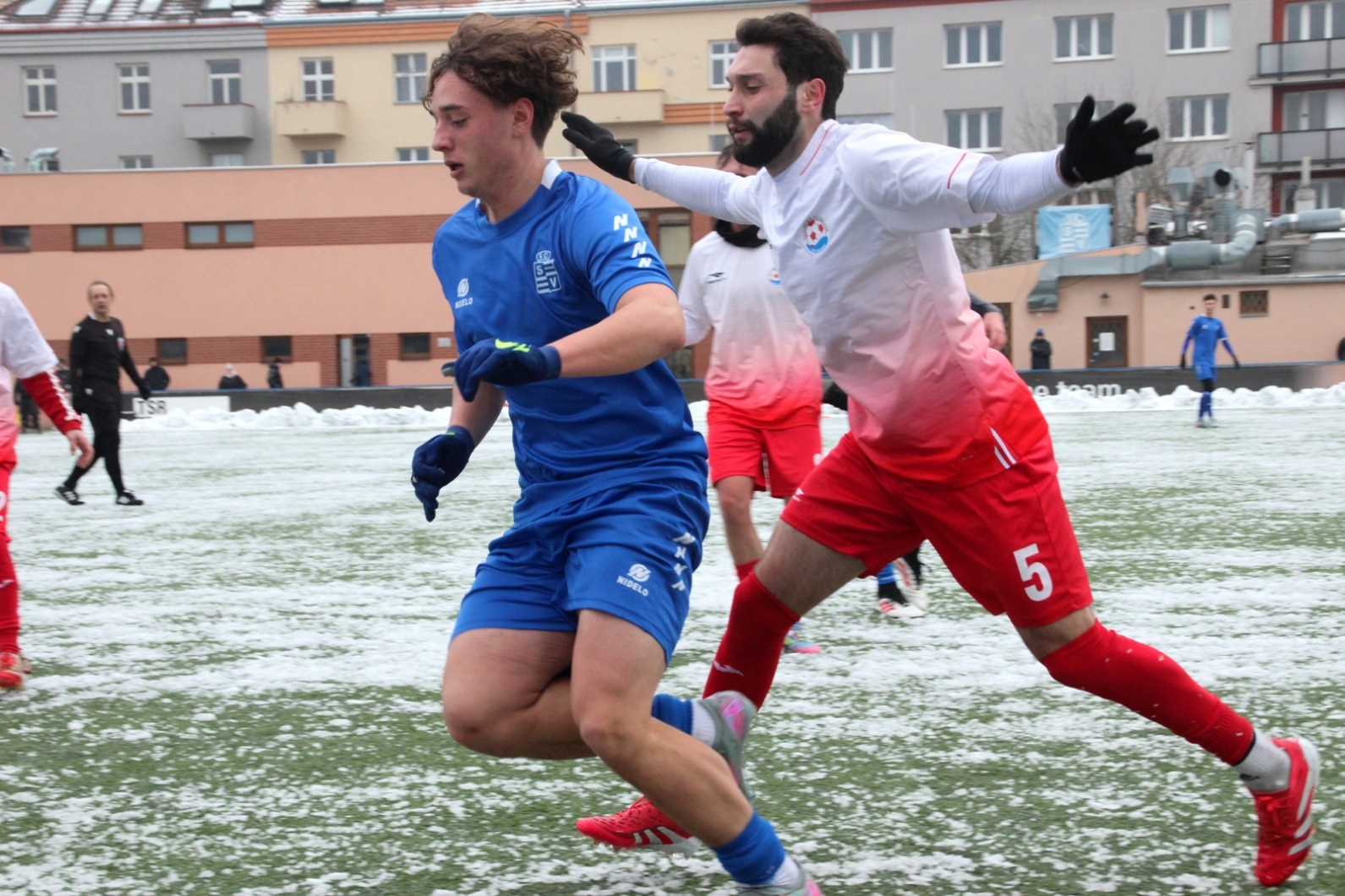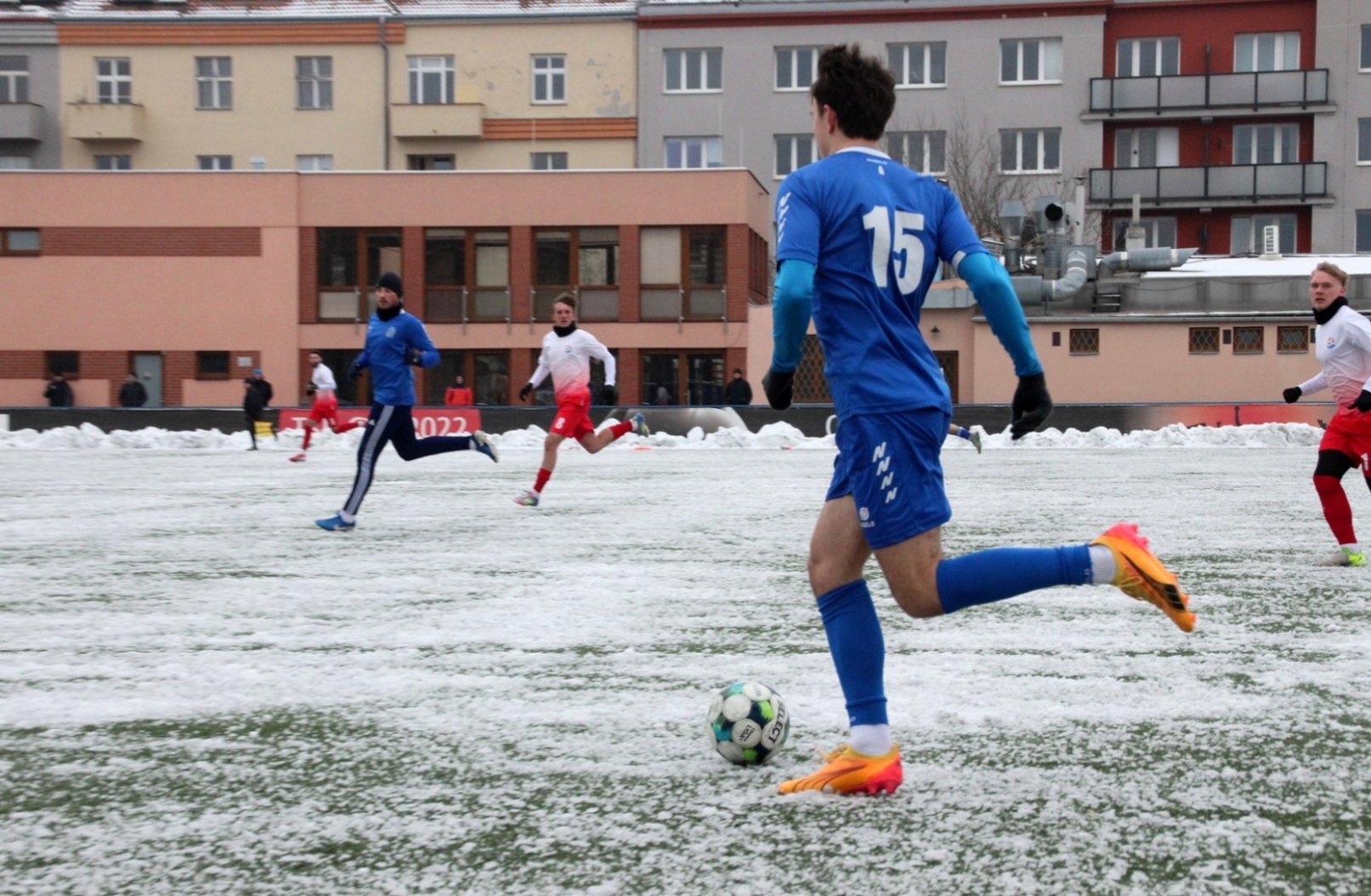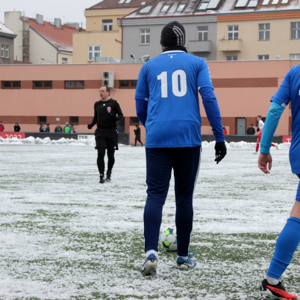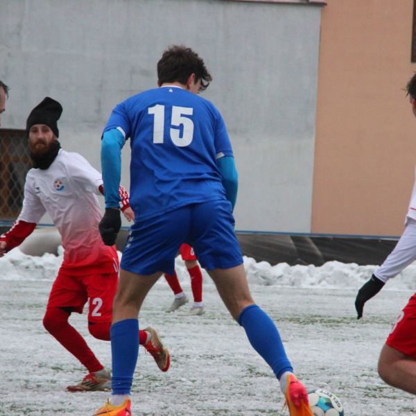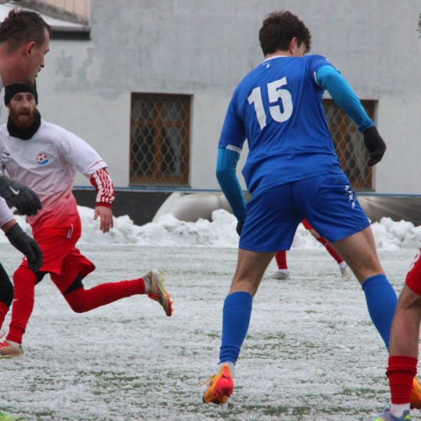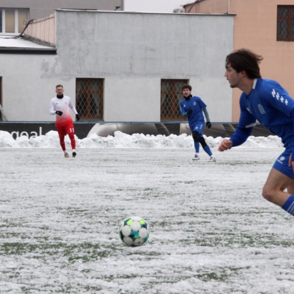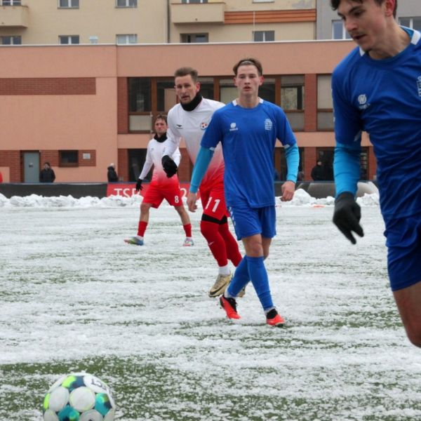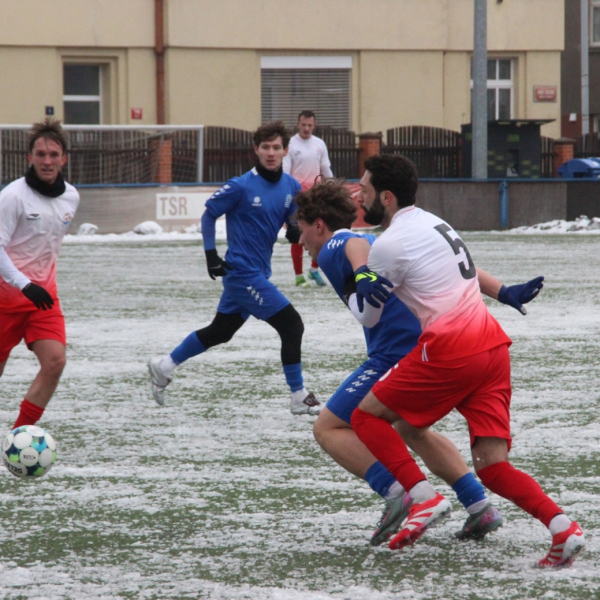 „A“-muži – Už v polovině prvního poločasu bylo hodně zřetelné, že třetí přípravné utkání v rámci zimní pauzy dovedou fotbalisté Slavoje Vyšehrad k vítěznému konci. Po 22 minutách hry totiž vedli nad Povltavskou 3:0, přičemž u všech tří branek, jež padly v rozmezí jedenácti minut, byl krajní záložník Matěj Prýmas (na snímku): první dvě dal sám a vzápětí, po faulu na něj v šestnáctce, proměnil penaltu Jiří Heřman. Až za tohoto stavu druhý tým podzimní tabulky divize A zvedl hlavu, vypracoval si šance, ale zmohl se jen na čestný úspěch po změně stran. Zápas na zmrzlém terénu tak skončil 3:1.