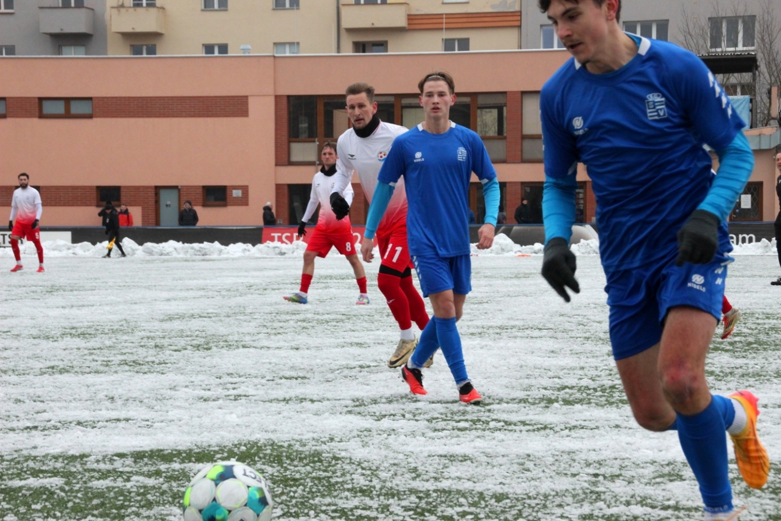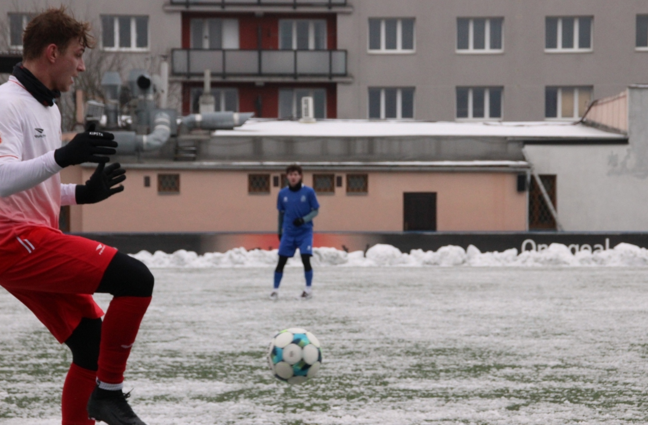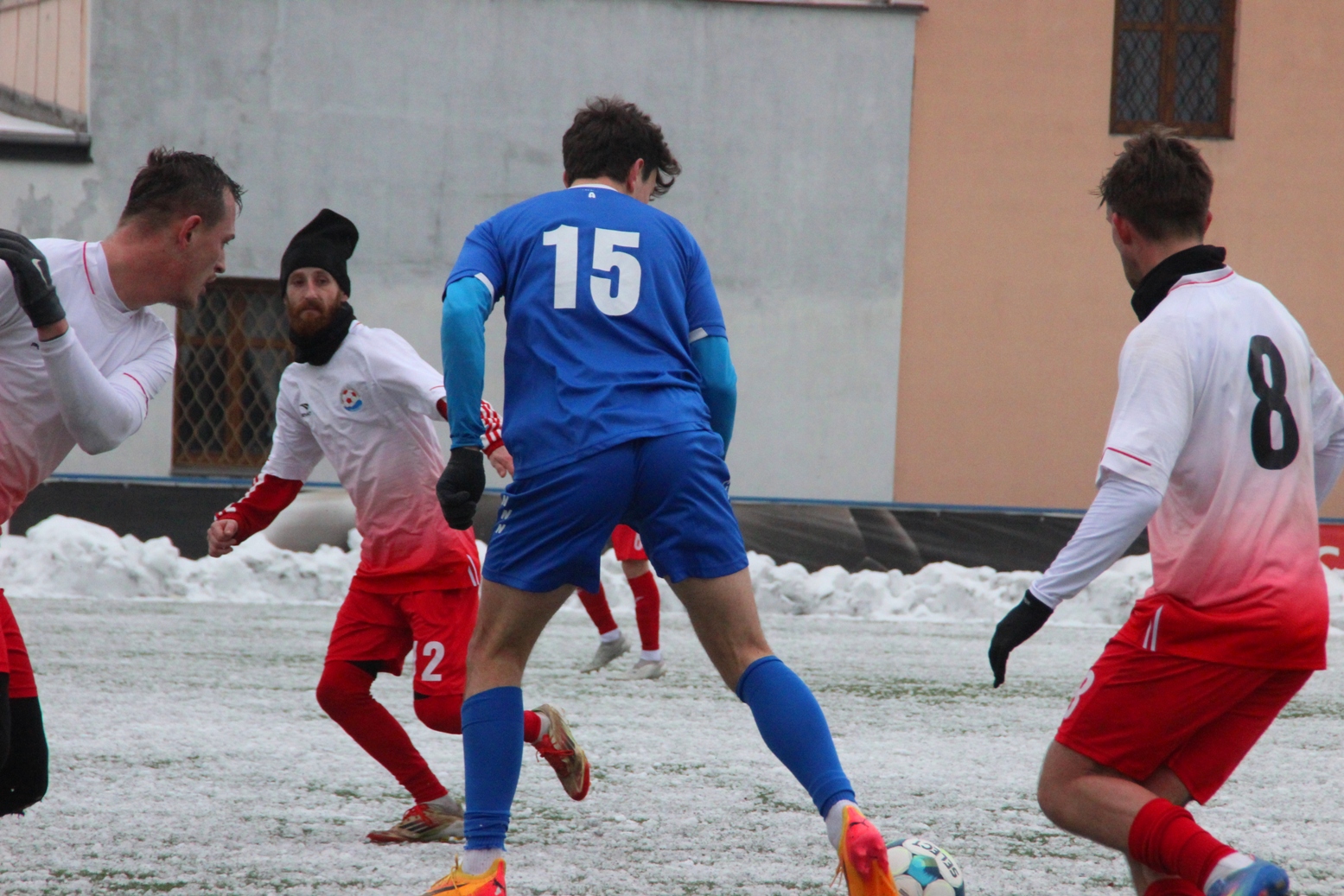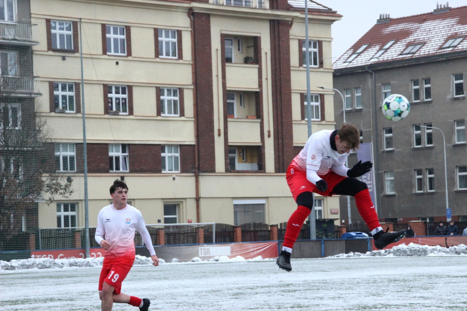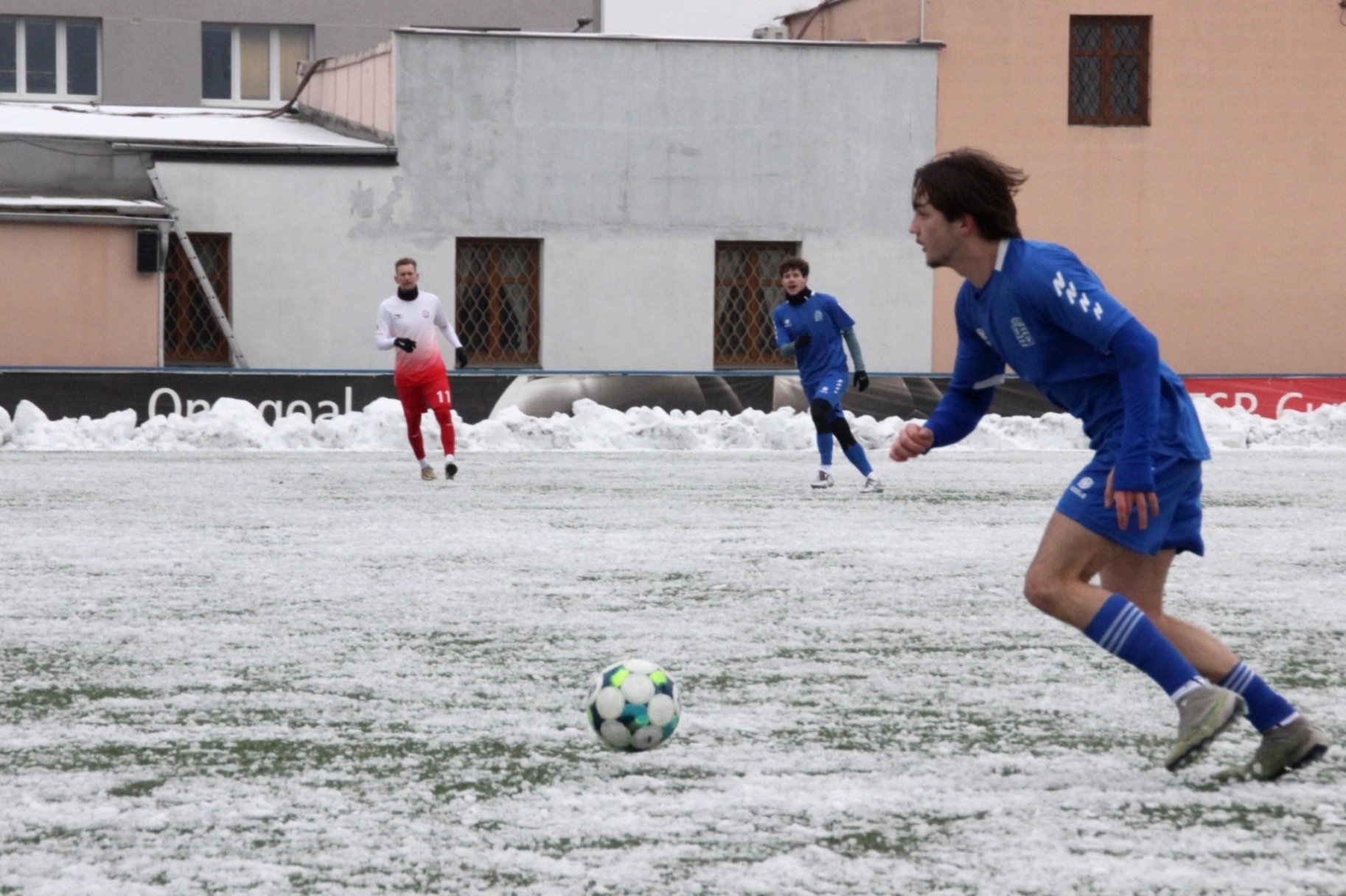 „A“-muži – Už v polovině prvního poločasu bylo hodně zřetelné, že třetí přípravné utkání v rámci zimní pauzy dovedou fotbalisté Slavoje Vyšehrad k vítěznému konci. Po 22 minutách hry totiž vedli nad Povltavskou 3:0, přičemž u všech tří branek, jež padly v rozmezí jedenácti minut, byl krajní záložník Matěj Prýmas (na snímku): první dvě dal sám a vzápětí, po faulu na něj v šestnáctce, proměnil penaltu Jiří Heřman. Až za tohoto stavu druhý tým podzimní tabulky divize A zvedl hlavu, vypracoval si šance, ale zmohl se jen na čestný úspěch po změně stran. Zápas na zmrzlém terénu tak skončil 3:1.