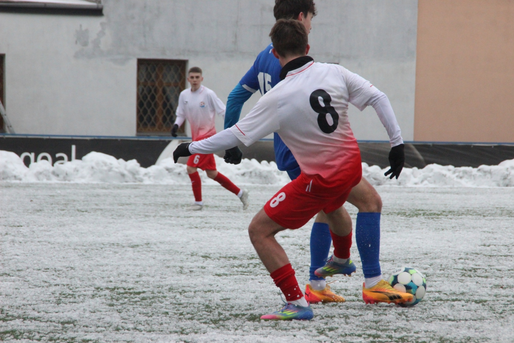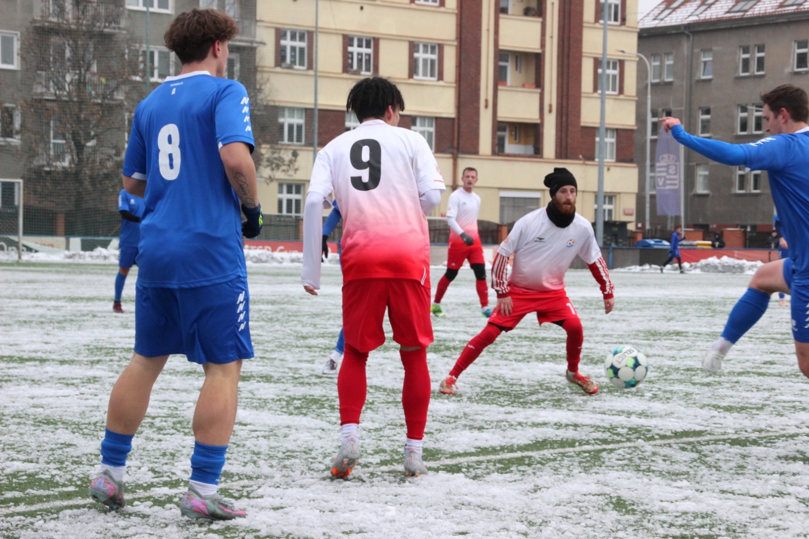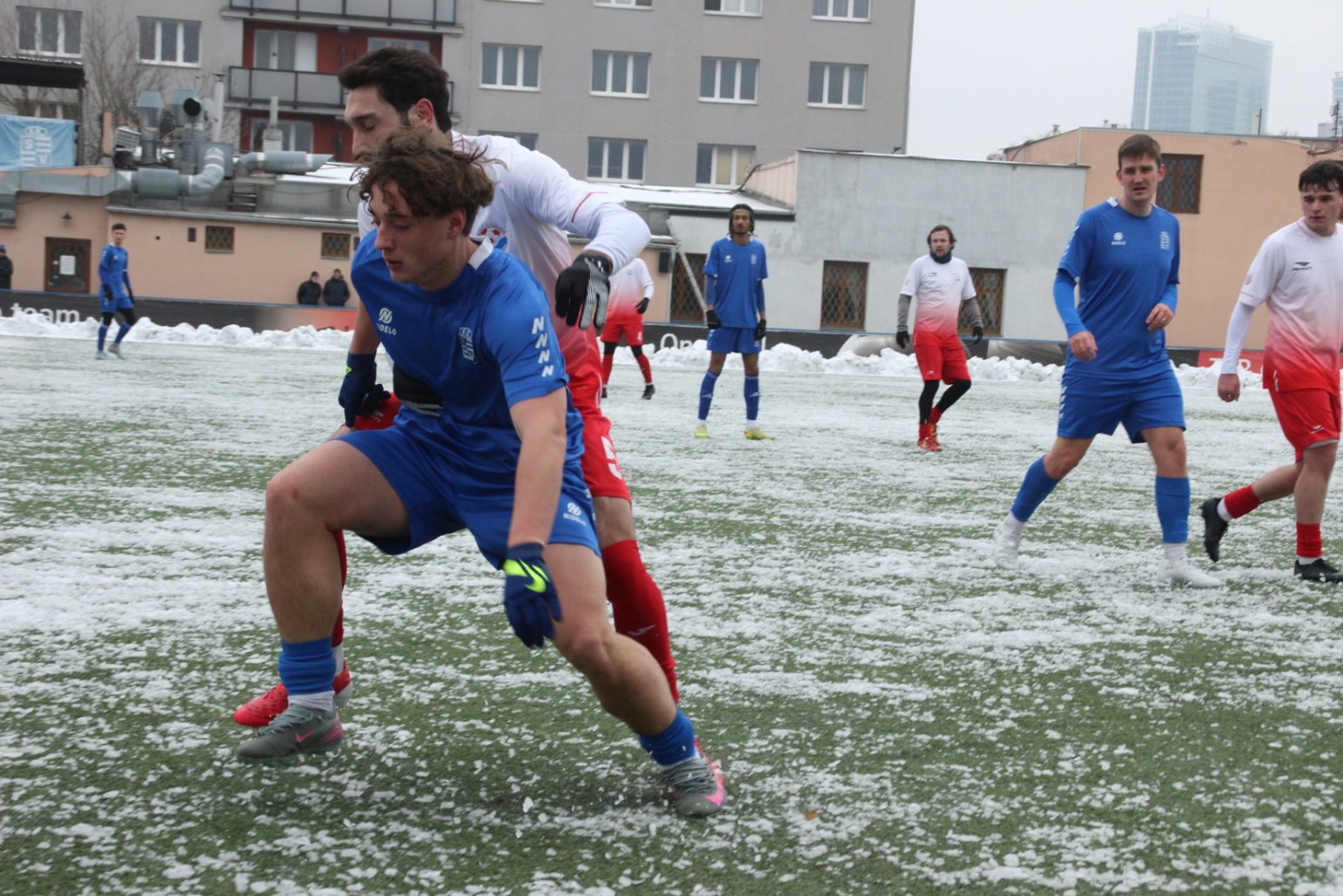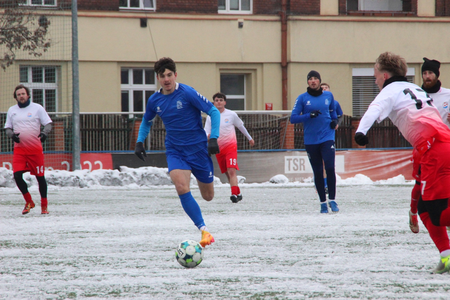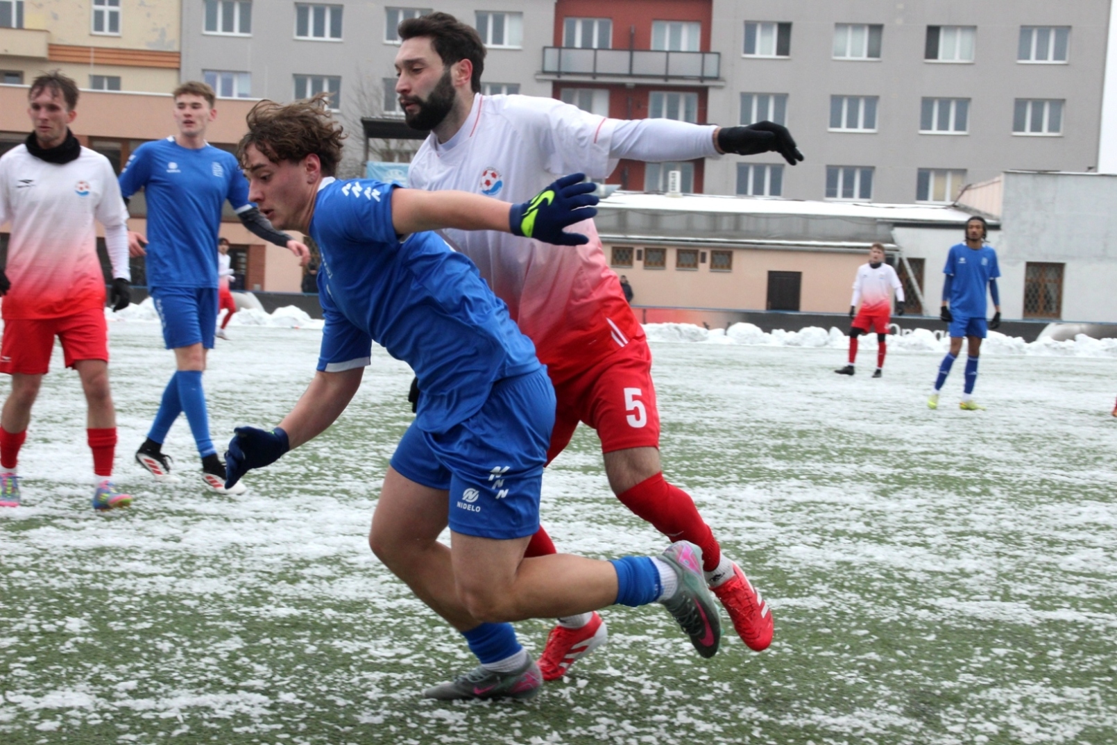 „A“-muži – Už v polovině prvního poločasu bylo hodně zřetelné, že třetí přípravné utkání v rámci zimní pauzy dovedou fotbalisté Slavoje Vyšehrad k vítěznému konci. Po 22 minutách hry totiž vedli nad Povltavskou 3:0, přičemž u všech tří branek, jež padly v rozmezí jedenácti minut, byl krajní záložník Matěj Prýmas (na snímku): první dvě dal sám a vzápětí, po faulu na něj v šestnáctce, proměnil penaltu Jiří Heřman. Až za tohoto stavu druhý tým podzimní tabulky divize A zvedl hlavu, vypracoval si šance, ale zmohl se jen na čestný úspěch po změně stran. Zápas na zmrzlém terénu tak skončil 3:1.