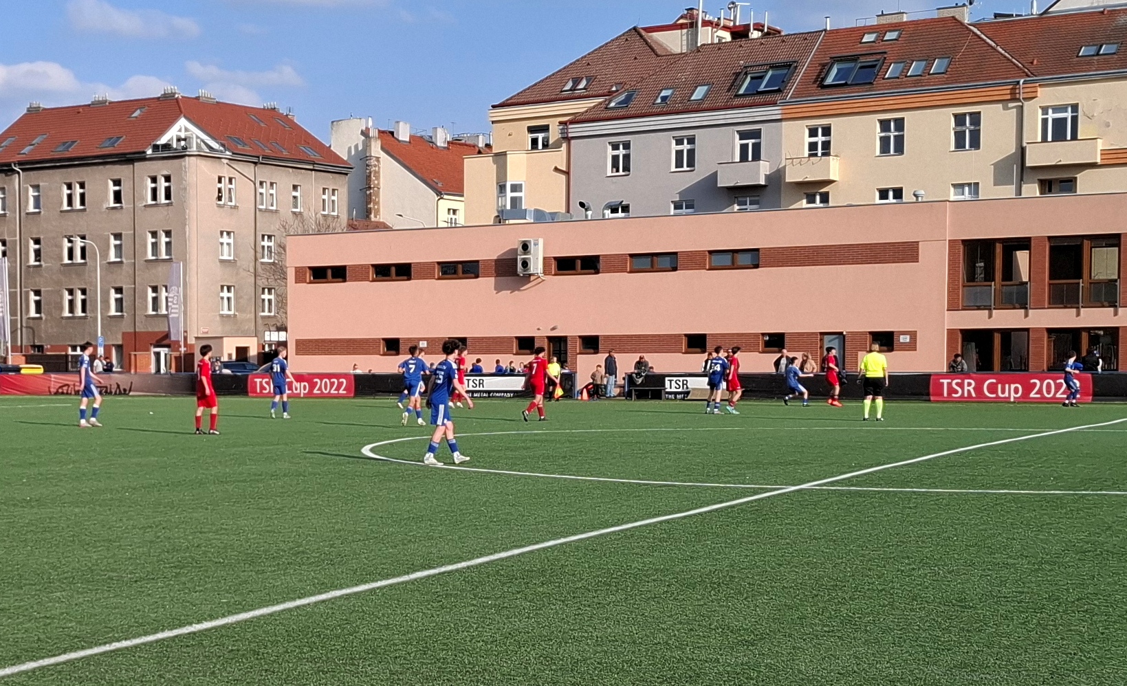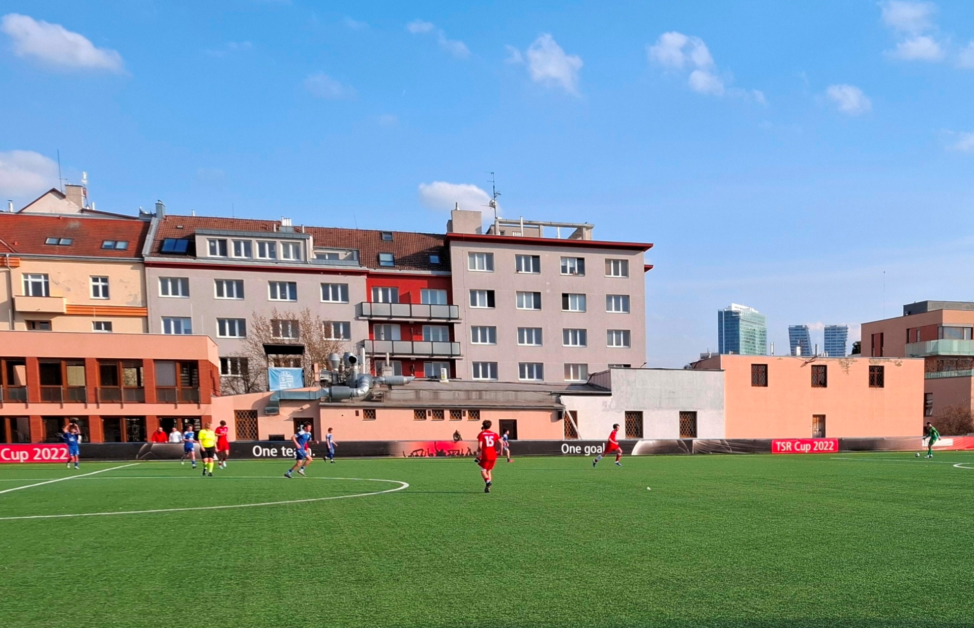Vinou zranění, nemoci i z jiných důvodů (škola, hrálo se totiž v pondělí) chyběl nejen nejproduktivnější hráč týmu Saroian, ale i Brenn, Březík, Stolz, Šnejdar a další. Naopak poprvé oblékl dresu Vyšehradu v mistrovském utkání 15letý odchovanec Bohemians Kryštof Zubek, jenž přišel ze Štěchovic. Tým hrající v červených dresech měl od začátku převahu a po deseti minutách měl gólovou šanci Matič, po souboji s gólmanem soupeře však těsně minul. Míč dostal do sítě Zoubek, jeho gól ale neplatil kvůli ofsajdu. V 17. min. ale Matič poslal přihrávku za obránce a nabíhající Lásik prostřelil brankáře: 1:0!
