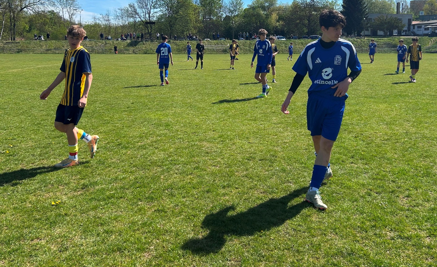 Alespoň o rok mladší hráči Vyšehradu si vedli podstatně lépe, čtrnáctiletí šemíci dosáhli takřka opačného výsledku: své rakovnické vrstevníky porazili 5:0, když hattricku dosáhl Matvii Vashchuk a po jedné brance připojil Tobiáš Barek s Oleksandrem Korzhakem.