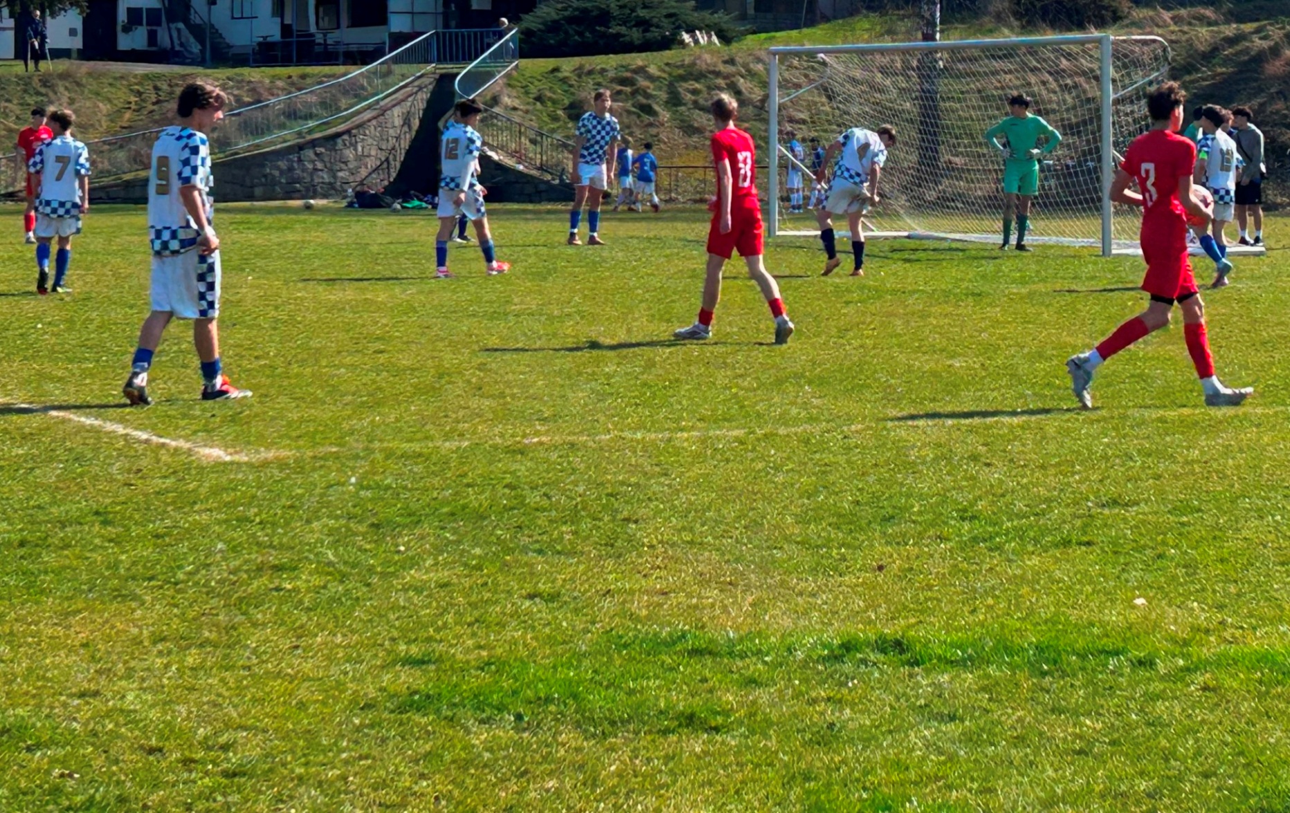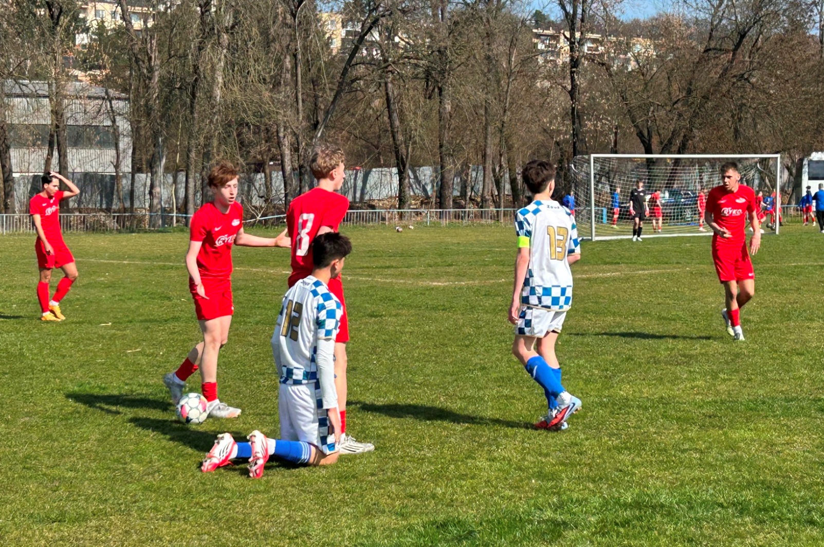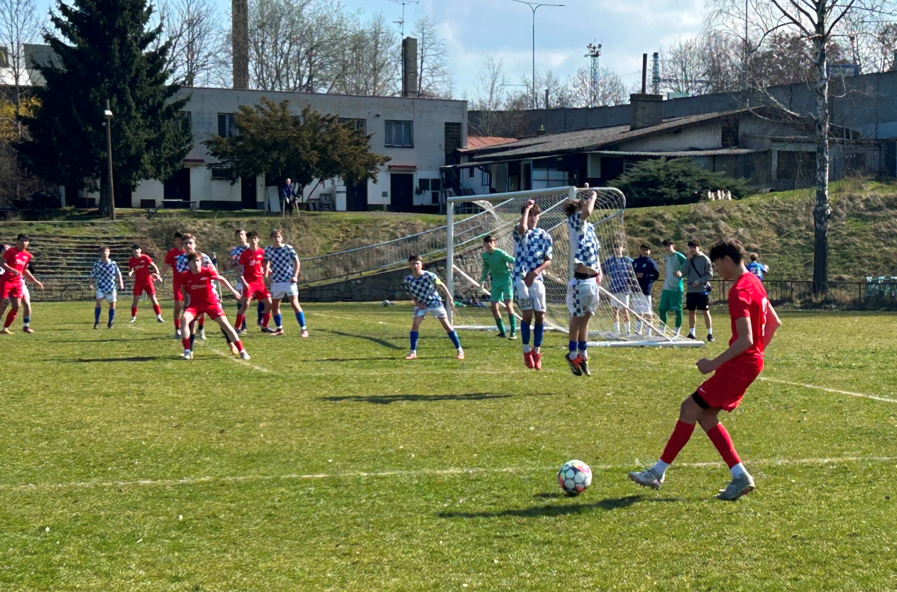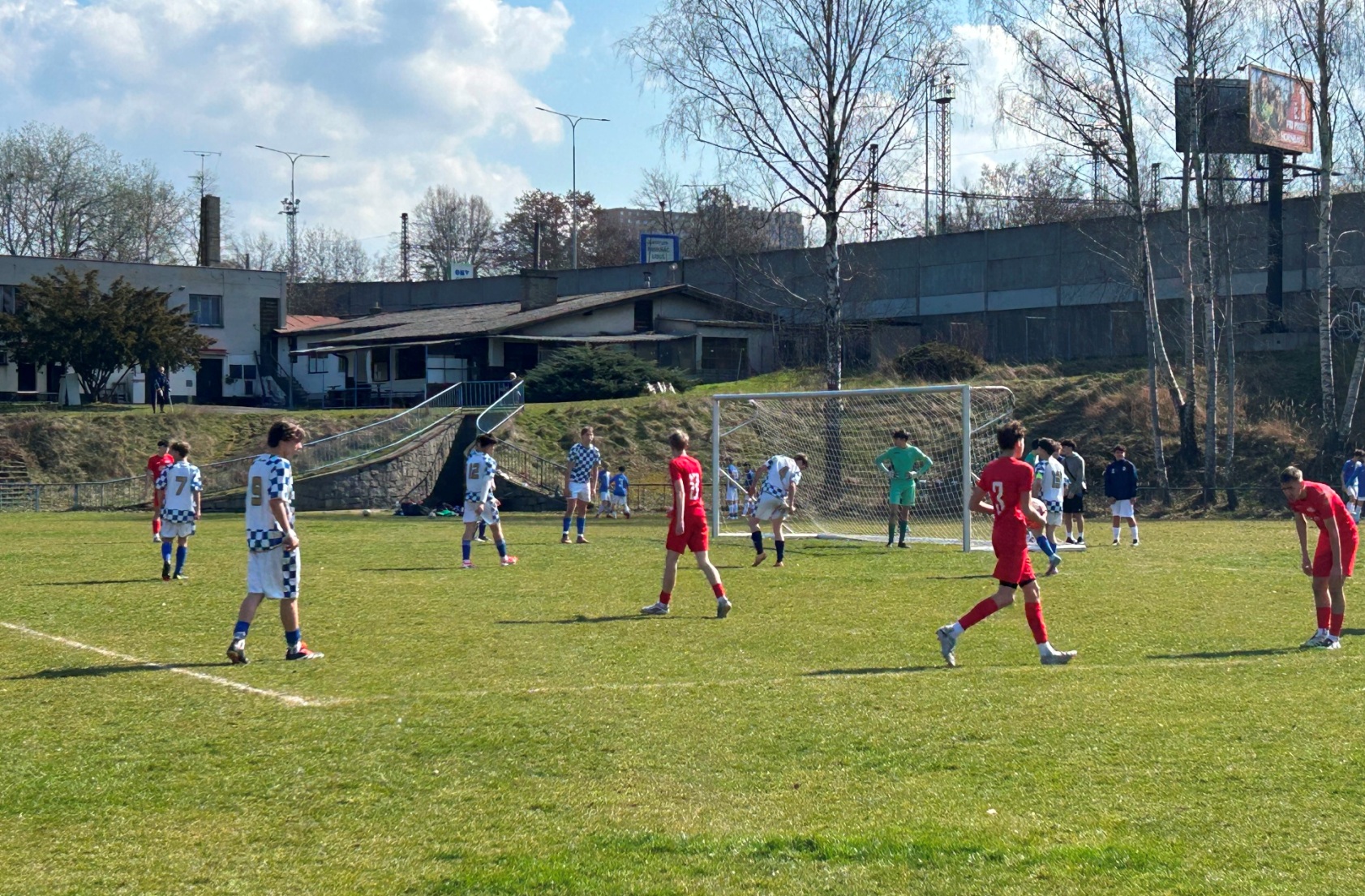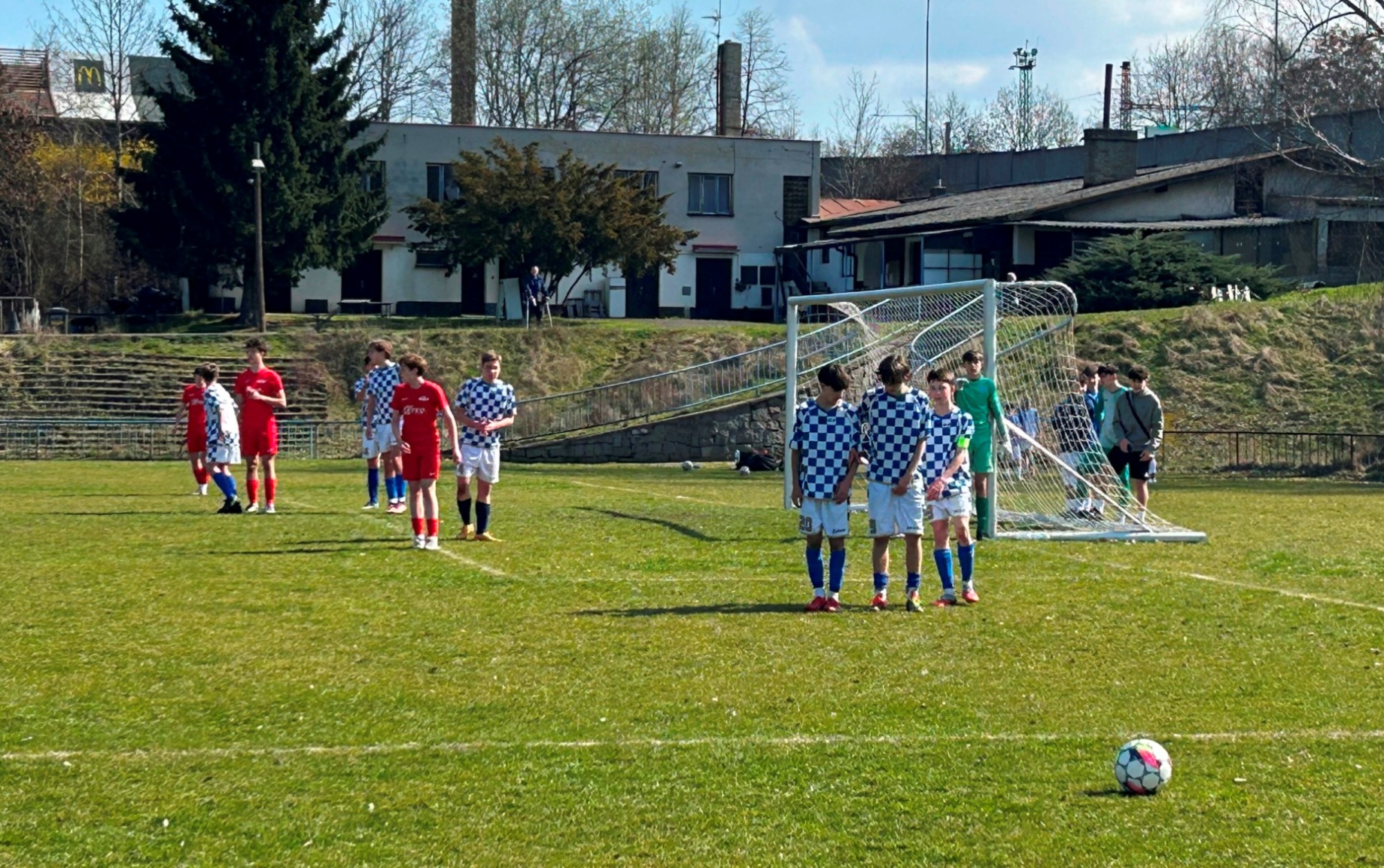 V zápase U 15 měl náš tým od začátku převahu i šance. Ještě za bezbrankového stavu dvě promarnil Stabenow – po deseti minutách hry byl pak faulován ve vápně Sejdia, sám si následně položil míč na bílý bod, penaltu však neproměnil. V úvodní půlhodině hry šest až osm šancí, stále však stav 0:0. Až pak se to zlomilo: ve 31. min. po faulu na L. Pazourka rozehrál Bezděka přímý kop do vápna, po odrazu Pazourek sklepl míč Dunajovi a ten trefil k tyči: 1:0! Dunaj pak měl další velkou šanci, trefil jen gólmana.