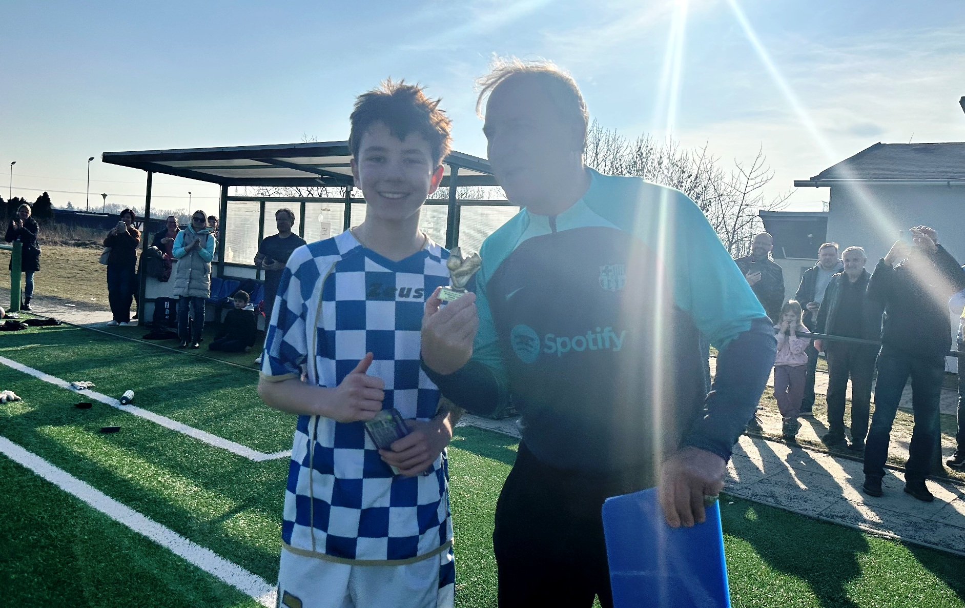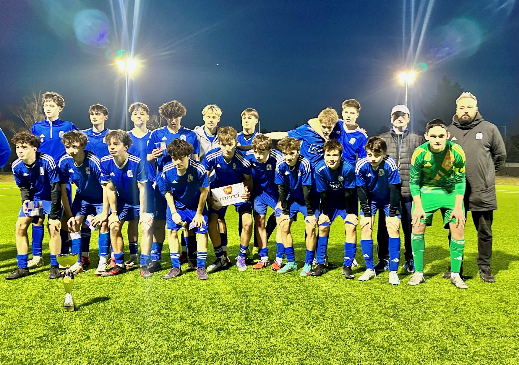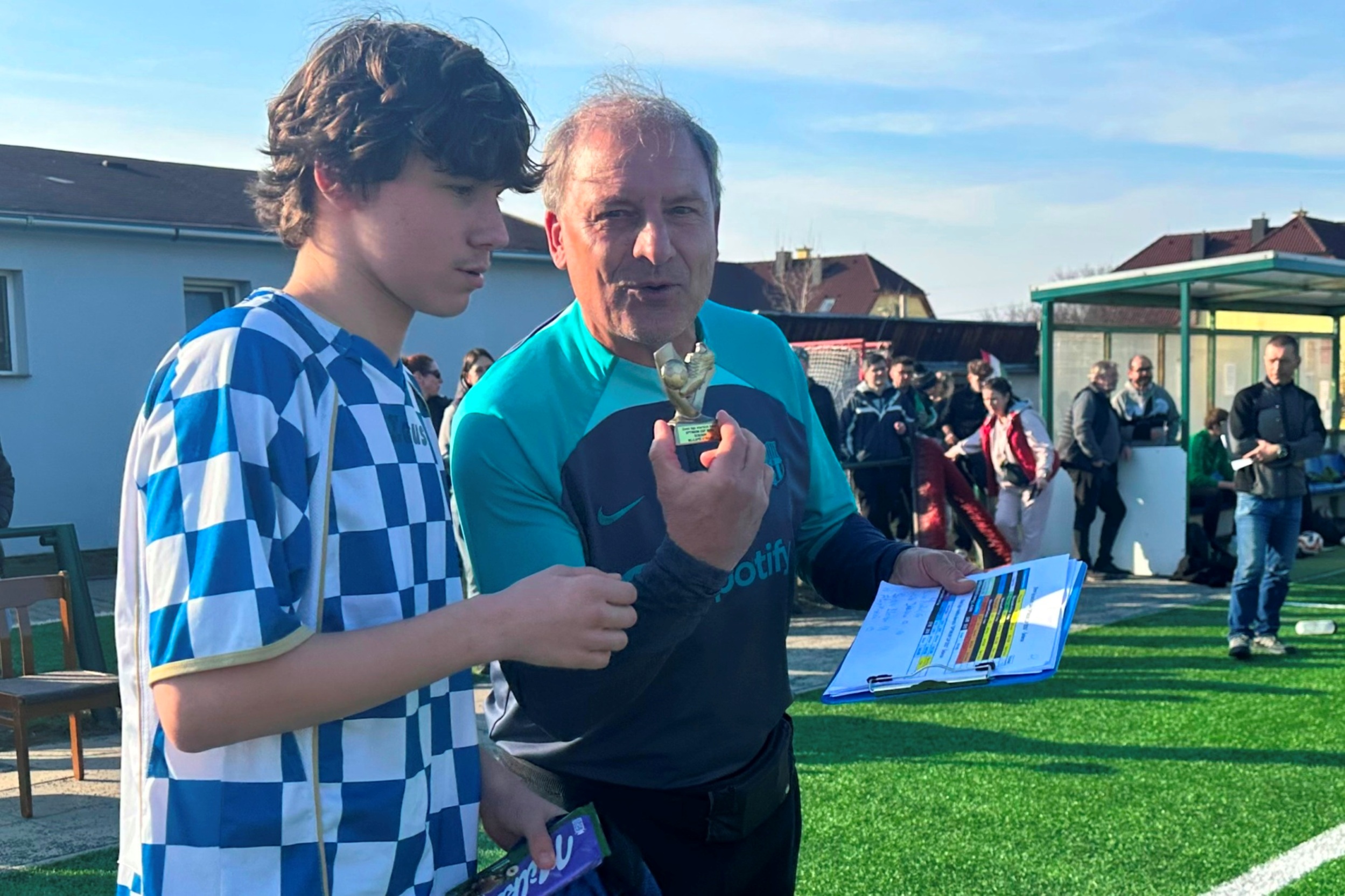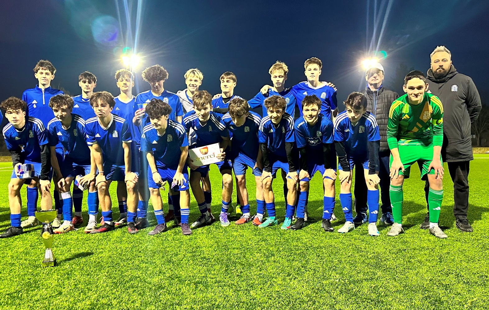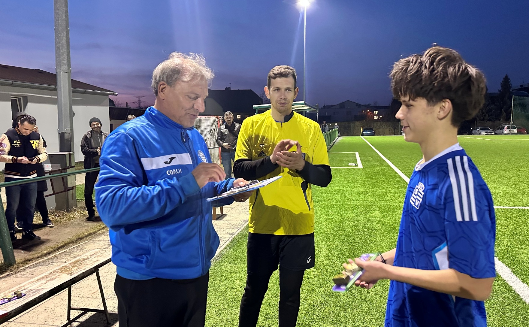 Po finálové remíze tak rozhodovaly o prvenství v turnaji penalty: rozstřel hráči Vyšehradu zvládli, vyhráli jej 3:1: střely z bílého bodu proměnili Jan Stolz, Adam Tesařík a Daniel Marca – nedal jen Václav Březík, který trefil břevno. Gólman Tomáš Debnár kapituloval při penaltách jen jednou – dvě naopak chytil a jednou soupeř minul jeho bránu. Hráči naší U 16 poté převzali pohár za první místo v turnaji.