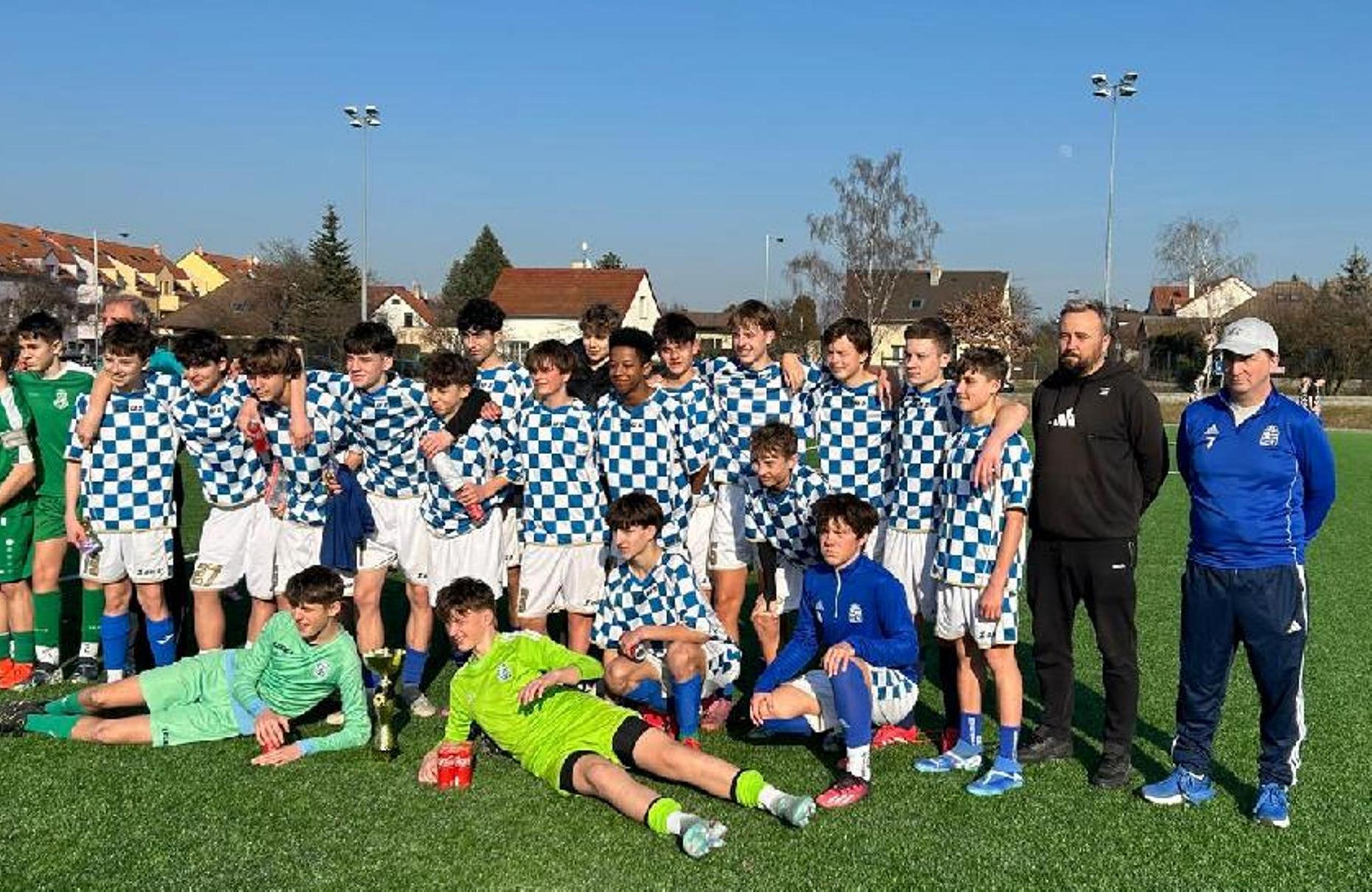 Starší žáci U 15, rovněž pod vedením trenérů Erika Šlechty a Františka Stolaře, si došli pro pohár mnohem přímější cestou. V semifinále šeberovského turnaje narazili kuriózně na vlastní U 14 a svým o rok mladším kamarádům nastříleli devět branek. Ve finále pak porazili Zbraslav 4:0, když dvakrát se trefil Dakhno Hlib a jednou Bleron Sejdia s Michaelem Fečkem. Nejlepším hráčem turnaje U 15 byl vyhlášen Filip Knězů, zatímco nejlepším střelcem se stal s devíti góly Dakhno Hlib.