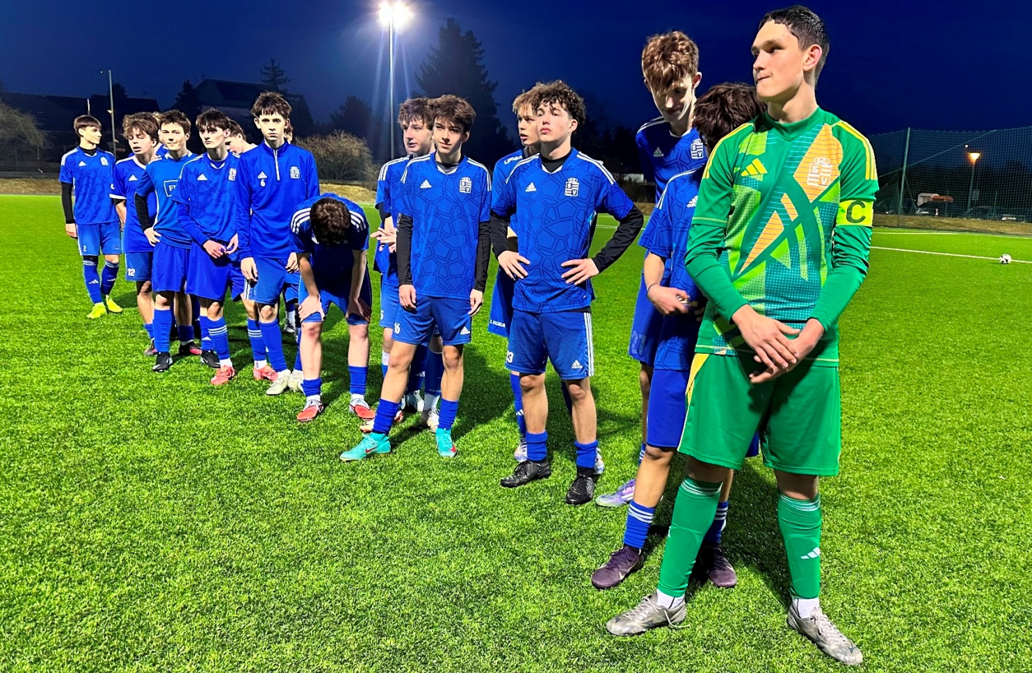 HORNÍ ŘADA ZLEVA: Filip KNĚZŮ, Tobiáš DUNAJ, Hlib DAKHNO, Bleron SEJDIA, Jáchym STABENOW, Imran AFANDIYEV, Milan ŘEZNÍČEK, Nicolas QUAST, Naveed Sakin SURRUR, Marco CINKL, Michael FEČKO, Patrik HULEŠ, Sebastian BEZDĚKA, Adrien ŠUŠKO, Erik ŠLECHTA (trenér), František STOLAŘ (trenér). SPODNÍ ŘADA: Tobiáš KOUTNÝ, Marek STUPKA, Lukáš PAZOUREK, Daniel JEŘÁBEK, Boris VRBA.
