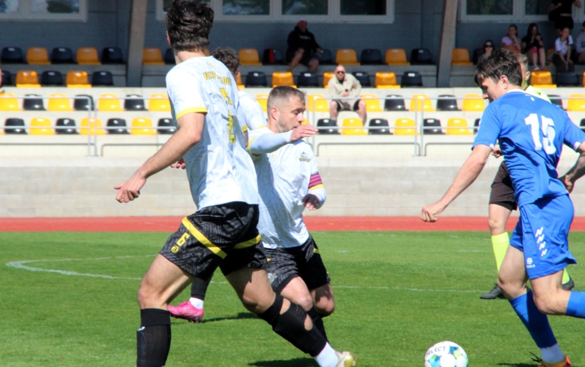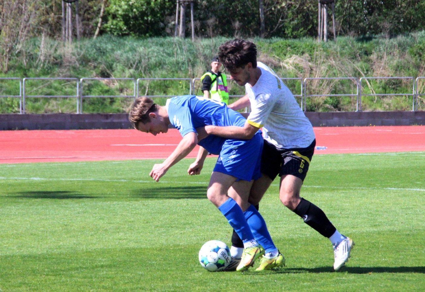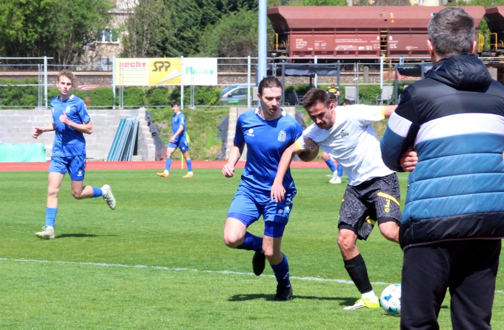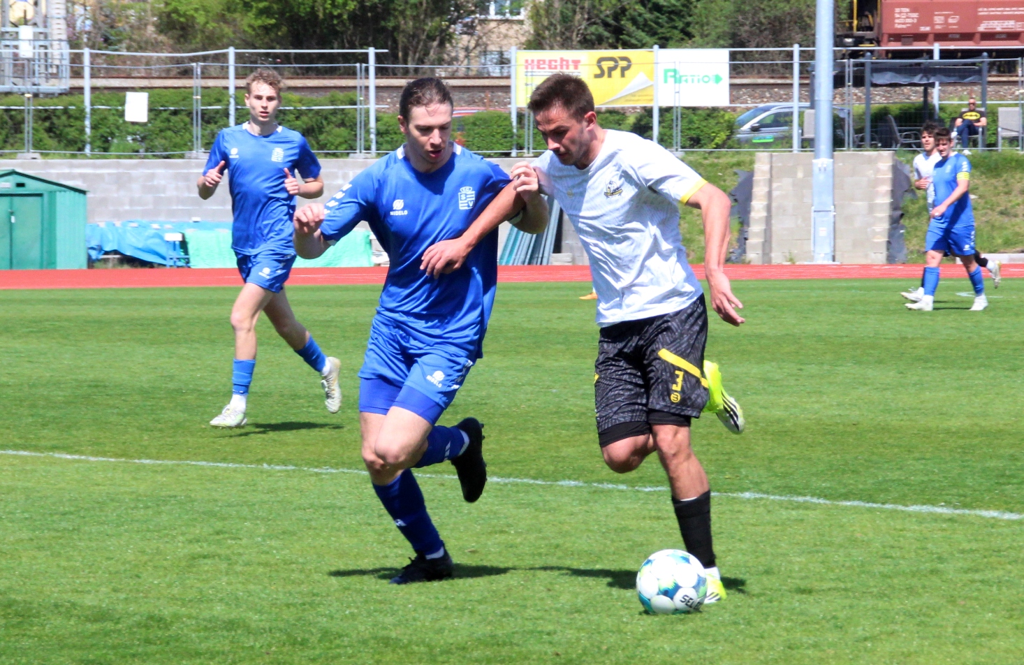 „A“-muži – Už deset gólů nastřílel v jarní části sezony Jiří Heřman: naposledy v sobotu 25. dubna v Radotíně se trefil dvakrát do sítě domácích, což vyneslo fotbalistům Slavoje Vyšehrad vítězství 2:1. Skóre zápasu otevřel kapitán šemíků po čtvrthodině hry, domácí brzy vyrovnali a modří pak po téměř celý zbytek zápasu dobývali radotínskou bránu. S přibývajícím časem si vynutili drtivou územní převahu, což vyvrcholilo v 90. minutě faulem ve vápně na Matěje Prýmase a vzápětí vítězným gólem Jirky Heřmana z penalty. Po Dukle Jižní Město je Radotín druhým protivníkem v letošním ročníku přeboru, na jehož úkor získalo naše mužstvo všech šest bodů.