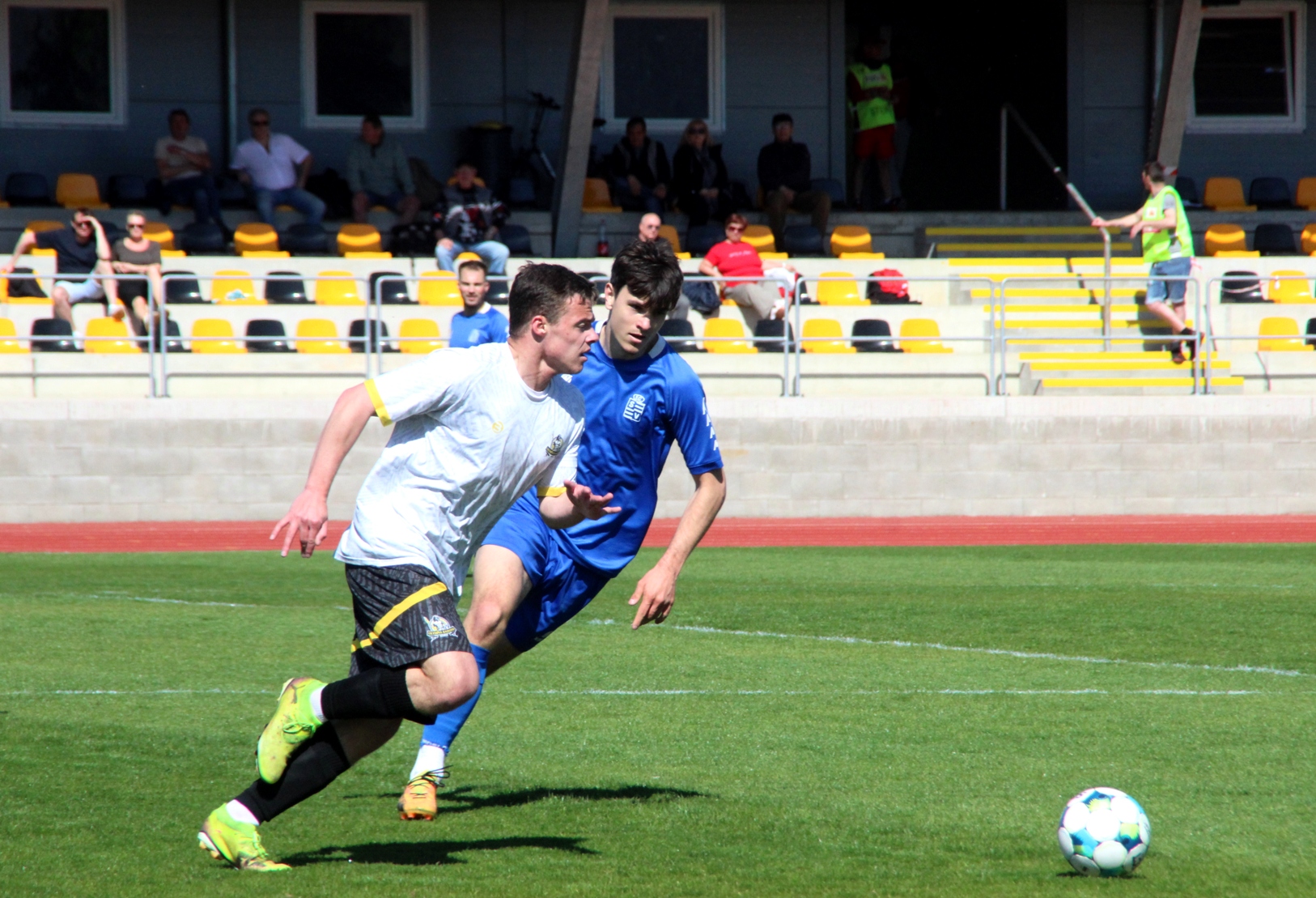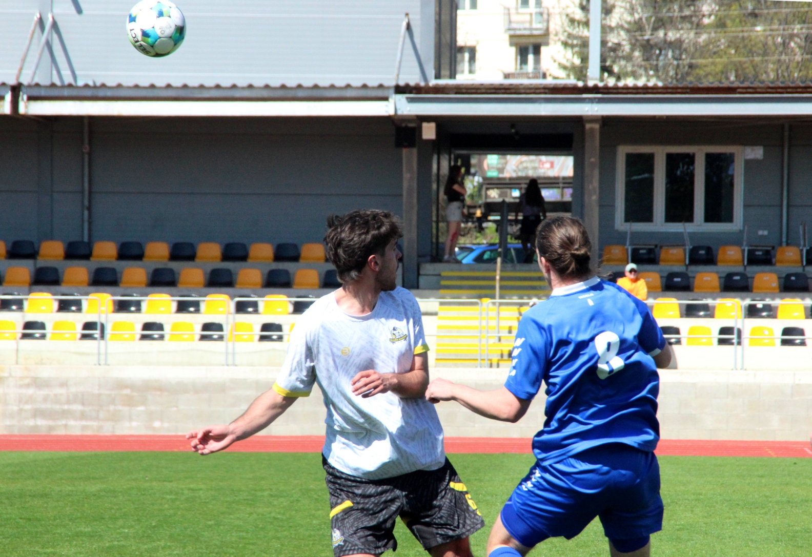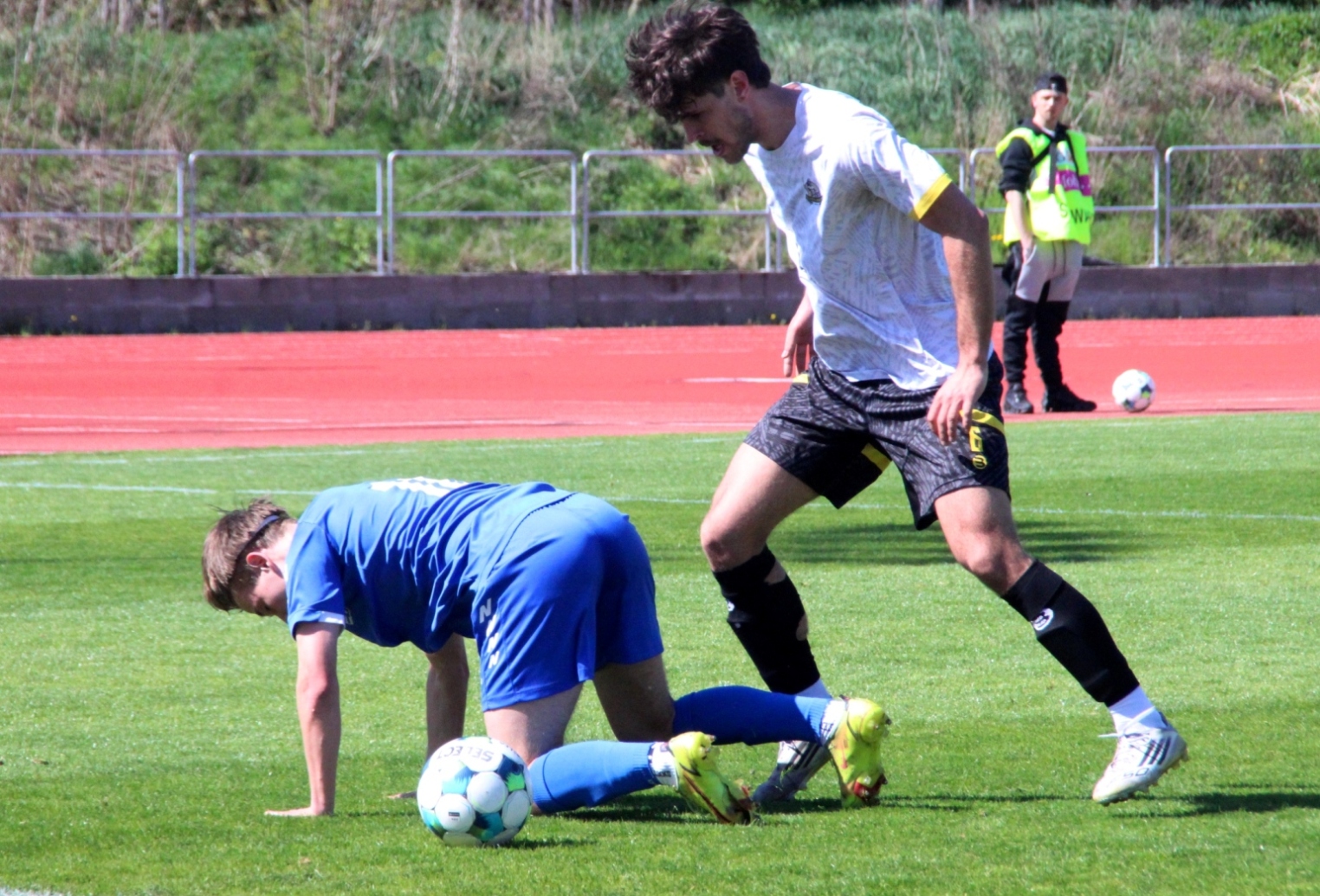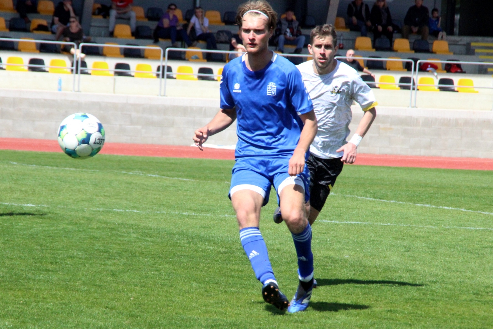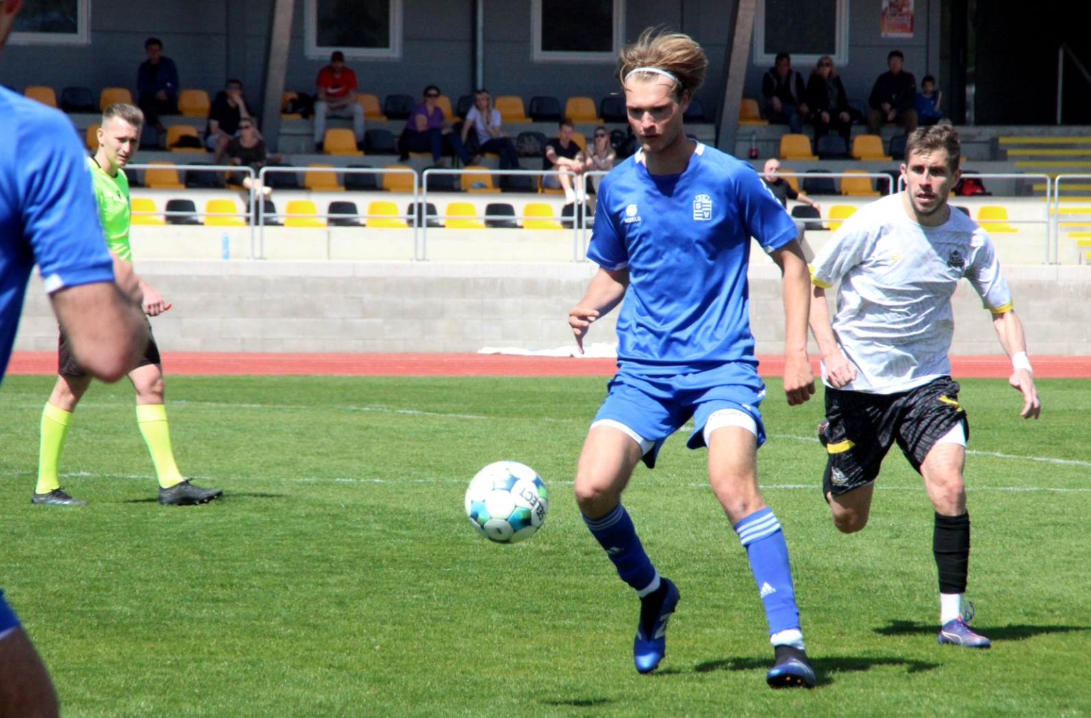 „A“-muži – Už deset gólů nastřílel v jarní části sezony Jiří Heřman: naposledy v sobotu 25. dubna v Radotíně se trefil dvakrát do sítě domácích, což vyneslo fotbalistům Slavoje Vyšehrad vítězství 2:1. Skóre zápasu otevřel kapitán šemíků po čtvrthodině hry, domácí brzy vyrovnali a modří pak po téměř celý zbytek zápasu dobývali radotínskou bránu. S přibývajícím časem si vynutili drtivou územní převahu, což vyvrcholilo v 90. minutě faulem ve vápně na Matěje Prýmase a vzápětí vítězným gólem Jirky Heřmana z penalty. Po Dukle Jižní Město je Radotín druhým protivníkem v letošním ročníku přeboru, na jehož úkor získalo naše mužstvo všech šest bodů.